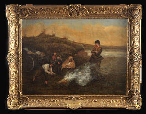 Frederick Walker. Olja, familj runt lägereld