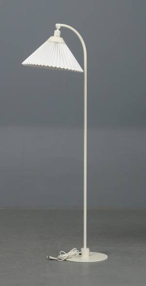 Gulvlampe / standerlampe, Le Klint, Model 368 af Flemming Agger. Stel, hvidlakeret. Med plisseret skærm(med mindre tryk). H. 142 cm. Minimale brugsspor.