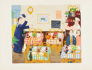 LENNART JIRLOW (född 1936): "Restauranginteriör/Le Bistrot", signerad L. Jirlow, 1975, numrerad 275/380, färglitografi, Arches, bildmått, 46x54,5 cm, . Oramad, gulnader.
