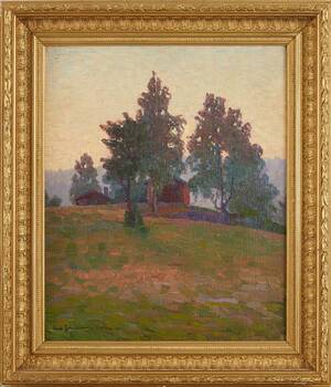 CARL JOHANSSON (1863-1944): "Sommarafton", olja på duk, signerad och daterad 1914, 47x38,5 cm . 348863.