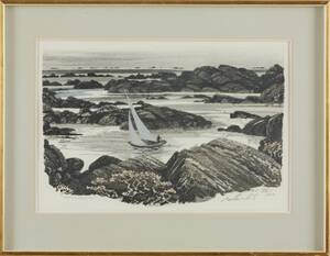 Roland Svensson (1910-2003), Sverige. Kust. Signerad, numrerad 241/360. Färglitografi, bildmått: 29x46, yttermått inklusive ram. 45x60 cm. Roland Svensson, född 1910 i Stockholm, död 2003, svensk Läs mer...