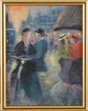 BENGT FRANSSON (född 1935): "Nattliv i staden", signerad Bengt Fransson, olja på duk, 27 x 35 cm. 341734.