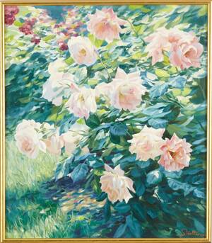 NADEZDA STRELTSOVA (Ukraina/Ryssland, född 1973): Rosor, signerad Streltsova, olja på duk, ca 60 x 70 cm, oramad. 327473.