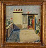 OIDENTIFIERAD KONSTNÄR (1900-tal): Takåsar, otydligt signerad, olja på pannå, 31x29 cm