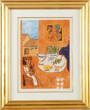 Figurkomposition Madeleine Pyk Född 1934 Signerad: M Pyk Numrerad: 209/250 Mått bildyta: 30 x 23 cm Mått med ram: 49 x 40 cm Konditionsrapport: Inga Läs mer...
