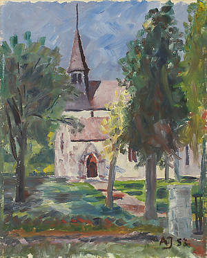 ALVAR JANSSON. Roma kyrka, olja på pannå, monogramsign o dat 53.