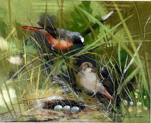 Rödstjärt. Signerad. 22x27 cm.