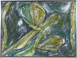 Karen Risborg. Mixed media på lærred. Signeret på bagsiden. 60x80 cm. (62x82 cm.).