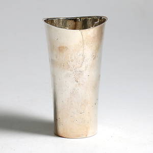 Eric Löfman Vas i silver Stämplad: Eric Löfman, Handarbete, MGAB, Uppsala, 1972 Höjd: 15,5 cm Öppningsdiameter: 9 cm Vikt: 226 gram Konditionsrapport: Mindre repor & Läs mer...