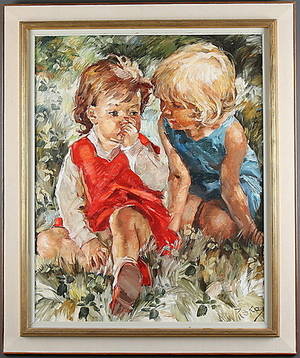 Charles Roka (1912-1999), Ungern. Gråtande barn. Signerad. Olja på duk, 40x30 cm, yttermått inklusive ram: 82x62 cm. Charles Roka, (på Ungerska: Károly Róka), född 1912, Läs mer...