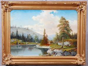 Avslutade auktioner liknande OIDENTIFIERAD KONSTNÄR. Olja på duk, bär signatur A V Rothstén, daterad 1887.