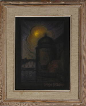 Maria Korsak, "Landsortsvy med små hus". Signerad M. Korsak. Olja på duk, 65 x 83 cm. Ställvis smärre krackelyr. Läs mer...