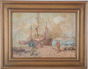 Vy över hamnen, signerad, bildmått 20 x 31 cm. Läs mer...