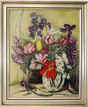 "Blumenstillleben", Öl auf Leinwand, gerahmt. E.A