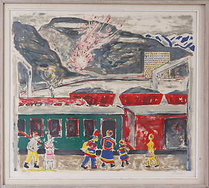 Albin Amelin, "Sundsvallsstrejken 1879". Färglitografi. Signerad Amelin, daterad 49 och numrerad 167/260 med blyerts. I. 51 x 73 cm. Ej examinerad ur ram. Gulnad. Läs mer...