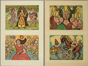 Henry Heerup (1907-1993). Otte litografiske tryk, fra . mappen "Nytår 72". Alle tryk sign. 24,5 x 32,5 cm (38,5 x 446 cm). Flere med fugtskjolder Läs mer...