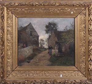 Gårdparti af Charles Beauverie (1839-1924), olie på plade. Sign. Beauverie. 30 x 35 cm (52 x 56). Trænger til overfladerensning