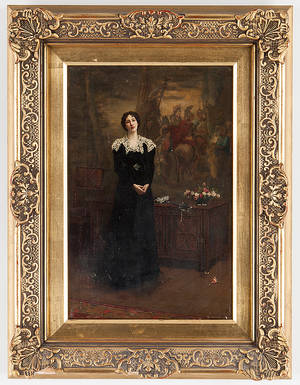 Okänd konstnär 1800/1900-tal , Porträtt av okänd kvinna Olja på duk, bär signatur, oval ca 70x53 cm Åldersrelaterat slitage. Smärre fläckar. Repor. Krackelyr. Läs mer...