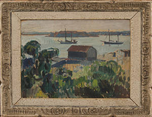 Nisse Zetterberg, "Det blå huset" Signerad Nisse Zetterberg och daterad Paris -38. Duk 50 x 61 cm. Krackelerad, färgbortfall. Läs mer...