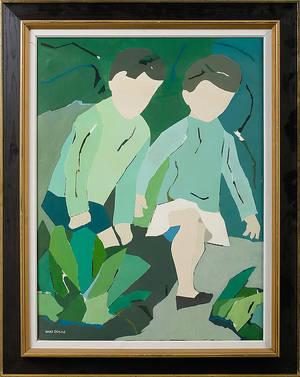 Hans Osswald (f. 1919), Sverige. Signerad, komposition. Olja på duk, 69x54cm, yttermått inklusive ram: 76x61cm. Hans Osswald, svensk målare och grafiker född 1919. Läs mer...