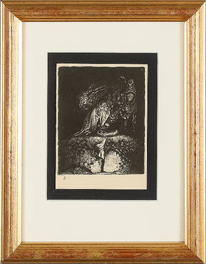 John Bauer, mezzotypi, utgiven av Åhlén & Åkerlunds, Stockholm 1918, bibliofilupplaga, 166/200. "Klampe-Lampe" ur "Sagan om de fyra stortrollen och Lille Vill-Vallareman". 18 x 17 Läs mer...