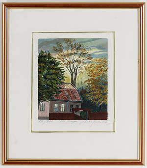 Maria Boczewska (f. 1940). Signerad, numrerad 94/360, över söders takåsar. Färglitografi, bildmått: 19x21 cm, yttermått inklusive ram: 40x40 cm. Maria Boczewska, polsk bildkonstnär och skulptör Läs mer...