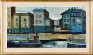 Bertil Wahlberg (1923-1980), Sverige. Gatumiljö. Signerad. Olja på pannå, 50x20 cm, yttermått inklusive ram: 63x34 cm. Bertil Wahlberg, svensk svensk målare, tecknare och grafiker född Läs mer...