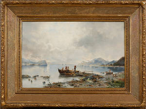 Okänd konstnär 1800-tal , Marint motiv Duk 39,5 x 56 cm. Krackelyr. Smärre fläckar. Läs mer...