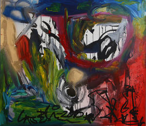 Lars Fantasiformidler Elgidh, født 1973. Abstrakt dobbeltkomposition, diptykon, betitlet "Tag mig med hjem" samt "Superman møder Djævlen", akryl og spray på lærred. Sign. og dateret Läs mer...