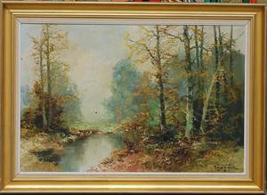 Hans Grabner. Oliemaleri på lærred. EFterårsskav, sign. Hans Grabner, Wien, 60 x 90 cm. (75 x 105) cm.