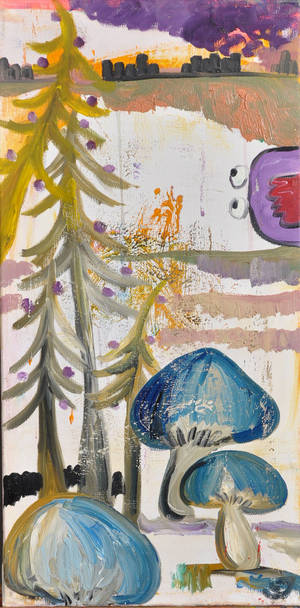 Byen i skoven af Jeanette Uldall f. mixed-media på lærred, sign. og betitlet på bagsiden, Byen i skoven, Jeanette Uldall 2013. 70x50 cm. U.R. Läs mer...