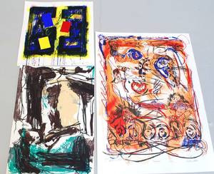Tre kompositioner, af Henrik Pryds Beck f. 1946, litografi 80/90, 28/90, 61/90, sign. og dat. Henrik Pryds Beck 89. 83x56 cm (99x71 cm) Läs mer...