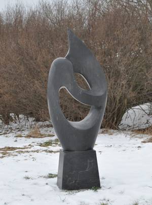 Abstrakt skulptur i håndhugget sortgrå marmor. H. 100cm. Vægt ca. 200 kg. Läs mer...
