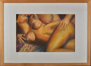 To erotiske kompositioner, akryl på lærred, Al Nawab Diyaa, f.1947, sign. Diyaa, 41x33 cm. (41x28) og 45x37 cm. (45x31)(2) (cd) Läs mer...