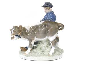 Figurin Royal Copenhagen pojke/kalv 16,5cm, signerad i godset.