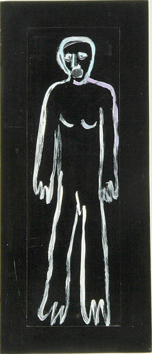 Komposition med figur. Olie på plade. Usign. 104 x 33. (121x50). Hidrører fra kunstnerens dødsbo.