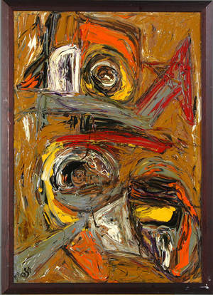 Jens Rost. Abstrakt komposition. Akryl på plade. Sign. Rost. Indrammet mål: 108 x 78 cm.