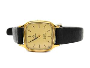 OMEGA, De Ville, Cal 1350, Serie nr. 43918429, Ref nr. MD 591.0023, Boett nr. 1350, damur, 20,5 mm, doublé (20 micron), quartz, mineralglas, skadad urtavla, gravyr, läderband, ca 1979.