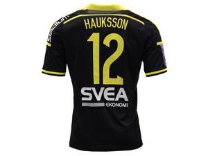MATCHTRÖJA, A. I.K. fotboll, säsongen 2015, ”hemma”, Adidas, Svart/Gul, Nr. 12, Haukur Hauksson, signerad av spelaren.