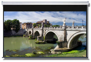 Fjernstyret projektor lærred, 92 tommer 16:9 format. Lærredet åbnes elektronisk via fjernbetjeningen eller kontrolboks. Bagsiden er lavet af lystæt sort beklædning, og hvidt lærred med Läs mer...
