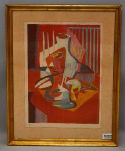 Siri Rathsman (1895-1974), Sverige. Signerad, numrerad 23/30, daterad 1960, komposition. Färglitografi, bildmått: 51x65cm, yttermått inklusive ram: 73x85cm. Siri Rathsman, född 1895 i Sundsvall, död 1974, Läs mer...