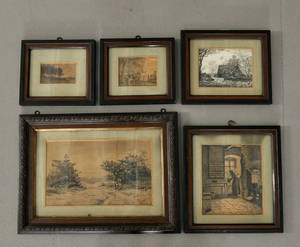 Fem ældre indrammede raderinger (5)
