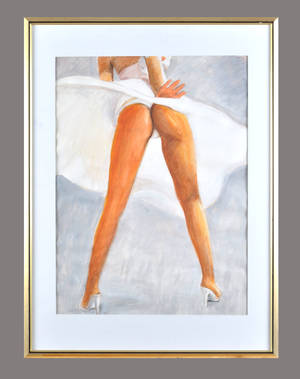 Diyaa Al-Nawab (f. 1947), Irak/Sverige. Akrylmålning på duk. Stående kvinnoakt, bevingad och i högklackade sandaletter. Signerad. Ej inramad. 60x40. (BUS) Läs mer...
