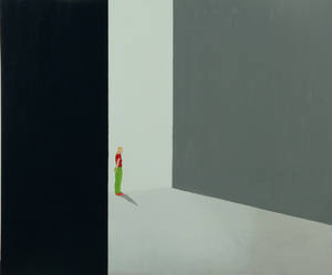 Jens Ulrich Petersen (f. 1947). Hvad laver vi egentlig her? fra serien Snoremænd, olie på lærred, sign. på bagsiden. 80 x 140 cm. Uden ramme. Läs mer...