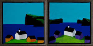 Preben Saxild. To emner: Færø-motiver nr. 22 og 23, akryl på lærred, sign. monogram PS, samt dat. og sign med monogram på bagsiden PS 2011.30 x 30 cm. (2)