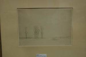 Landskap med träd. Signerad 1949. Litografi 53/110, 20x29 cm.