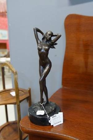 Naken ung kvinna. Patinerad brons. Samtida. H 30 cm.