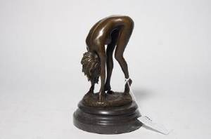 Kvinnofigur. Samtida. Brons på stensockel. Okänd formgivare. H 18 cm