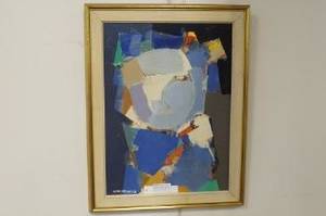 Hans Osswald (f. 1919), Sverige. Signerad, komposition. Olja på duk, 69x54cm, yttermått inklusive ram: 76x61cm. Hans Osswald, svensk målare och grafiker född 1919. Läs mer...