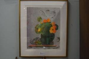 "St. Paul de Vence, Vi 1995", blomsterstilleben. Litografi, signerad, 20/200. Ca 50 x 40 cm